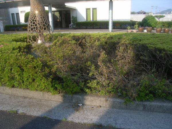 場所は日向市文化交流センターに隣接する中央公民館の玄関前の植え込みです。