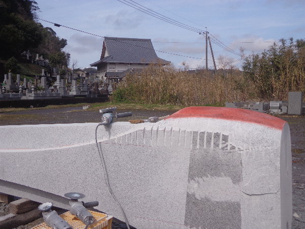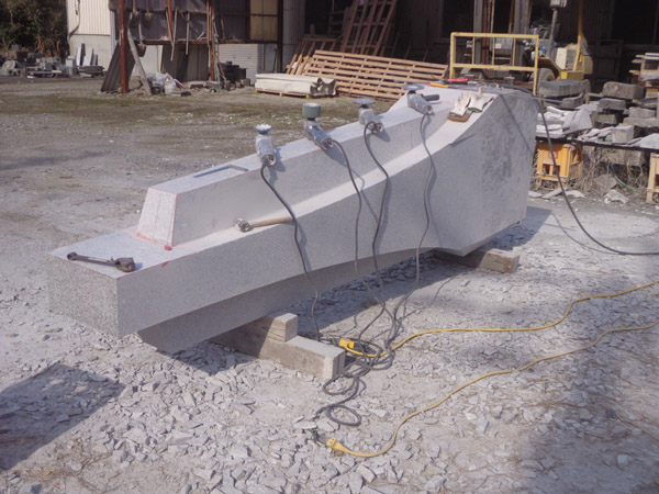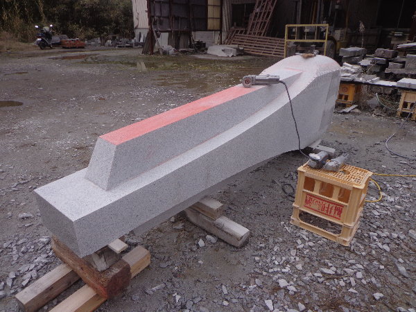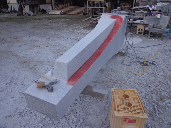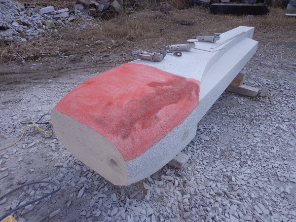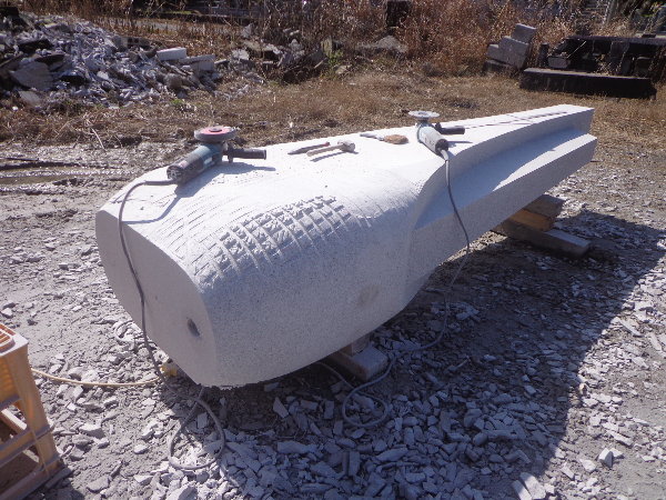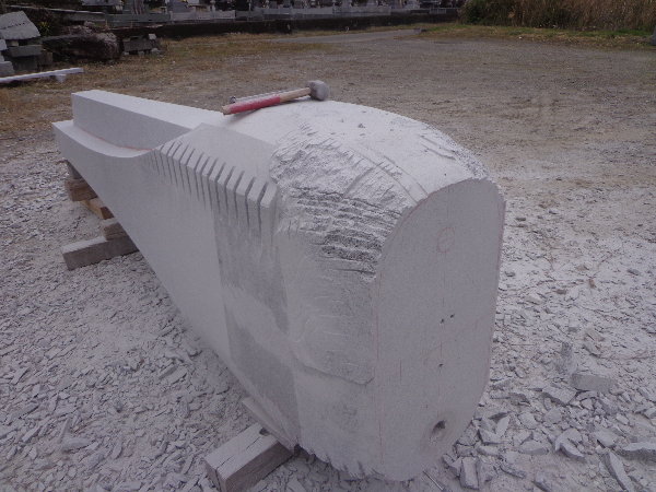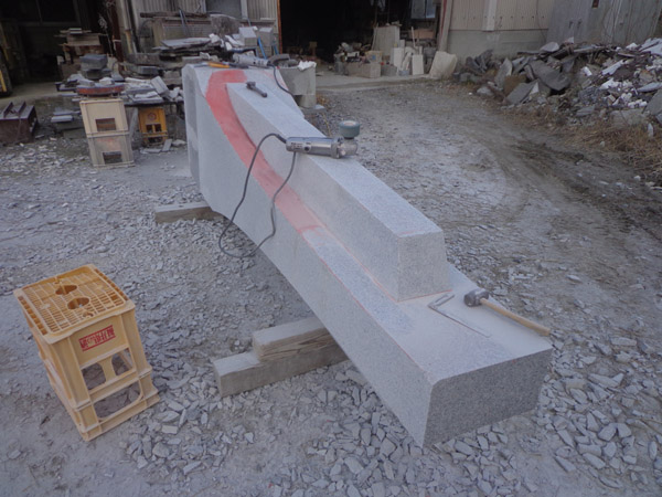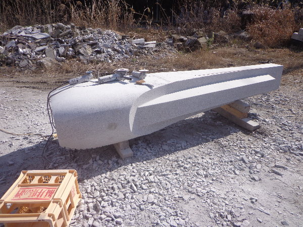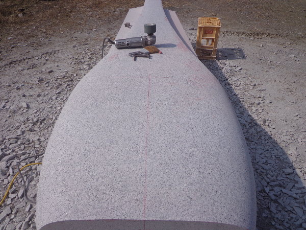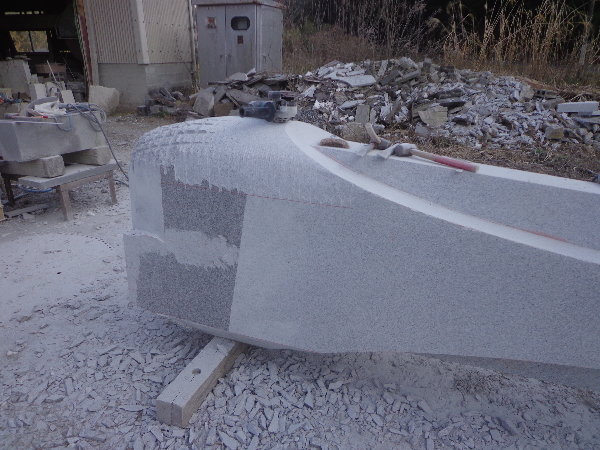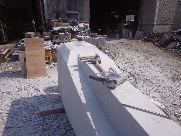 下部のアール成形の続きと稜線のカップ砥石作業を進めました。