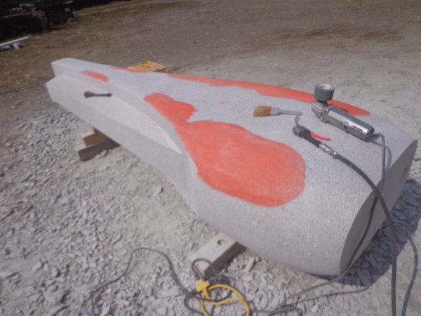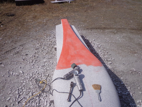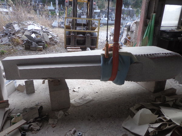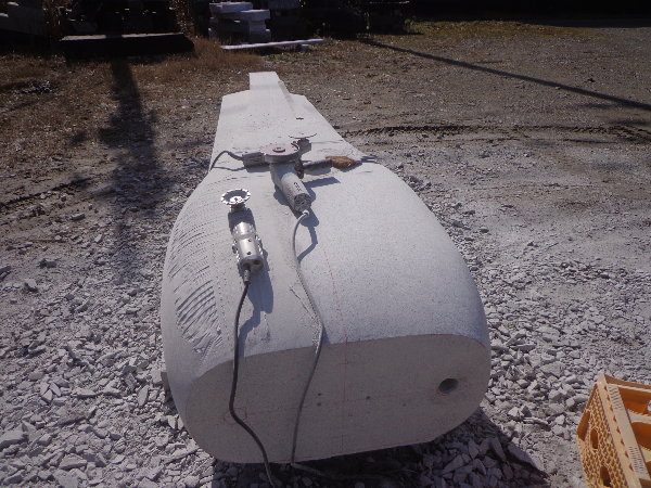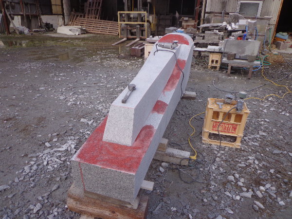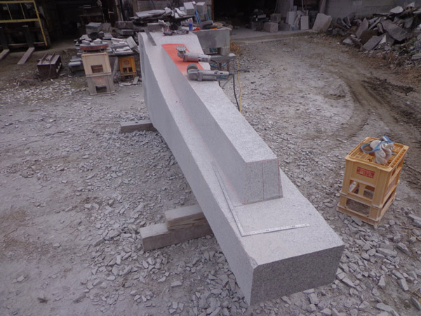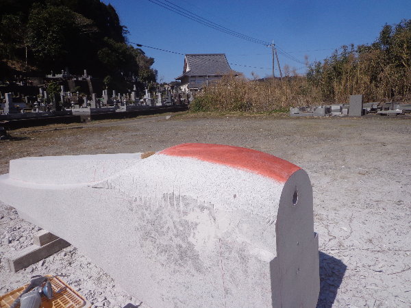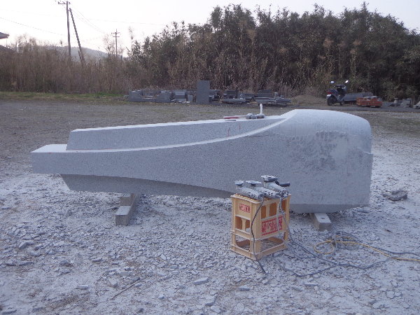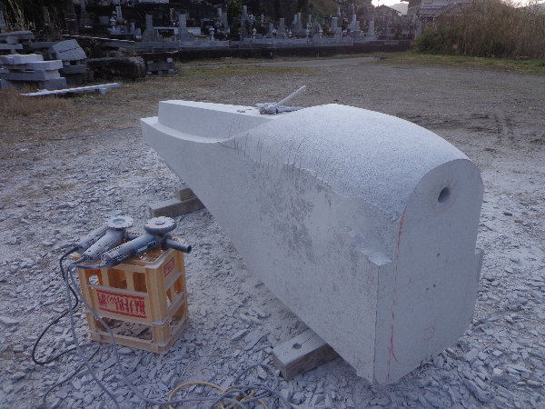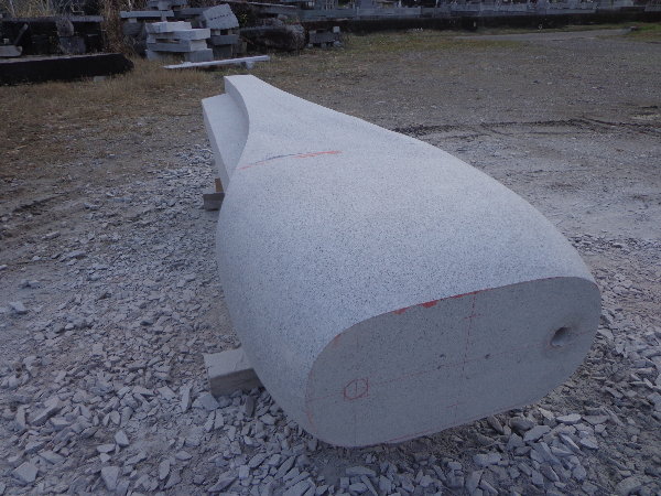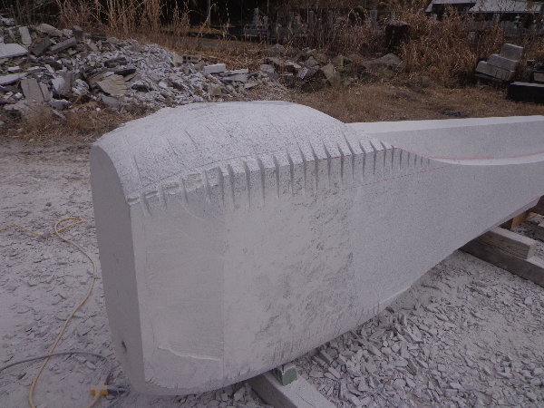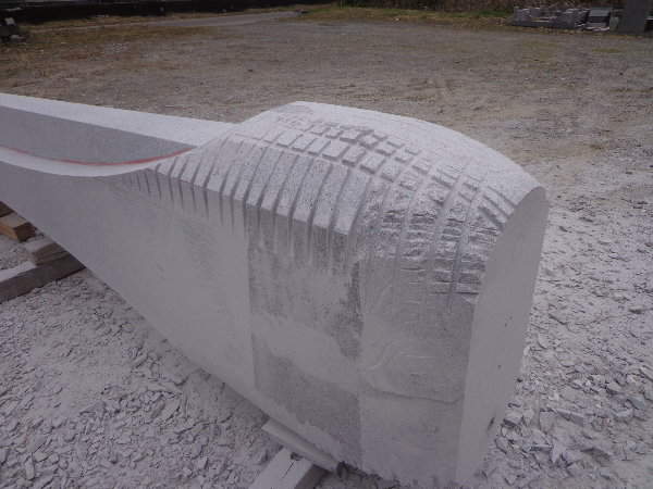 下部のアール成形の続きと稜線のカップ砥石作業を進めました。