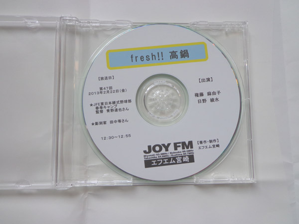 ラジオなので画像がありませんが、午後にパーソナリティ-の日野さんたちが番組を録音したCDを持ってきてくれました。