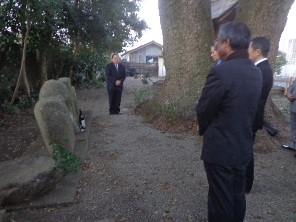 私の作った庚申碑にお神酒を注いで、大皿にたまったお神酒を回し飲みします。