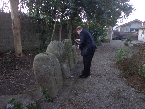 どれが仲町公民館の庚申塚かわかりませんので、すべての塚にお神酒を捧げます。