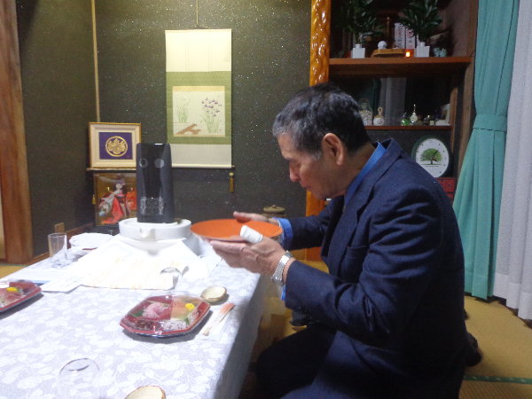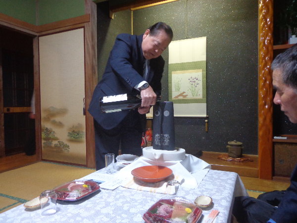 以前は講宿宅で飲み明かしていたのですが、奥さんの負担が大きいので今では講宿では定めの3品だけ頂いて軽い酒宴とし、2次会で本格的に飲むように改めました。