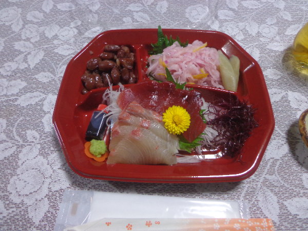 仲町公民館の庚申講宿での会食は、「刺身、酢の物、煮豆」の3品と定めてあります。