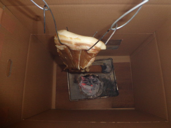 ☆夕刻から、先日作ったベーコンの再燻製をしました。