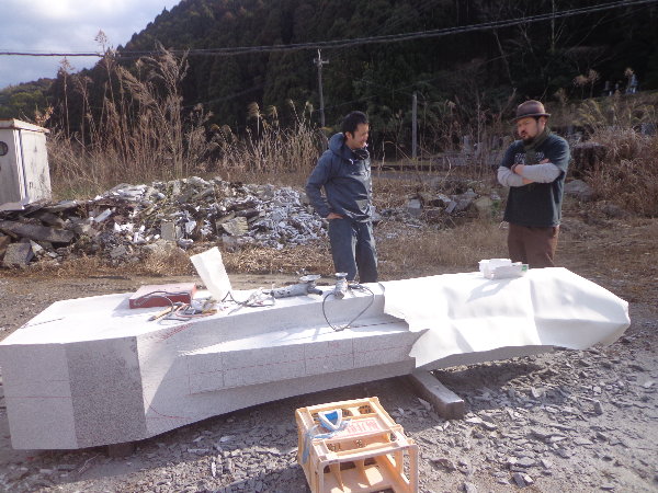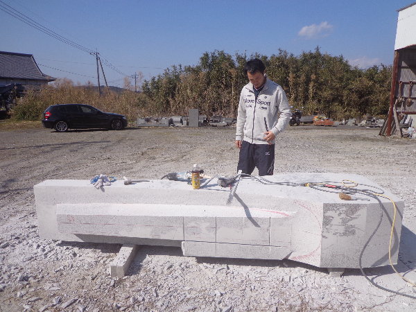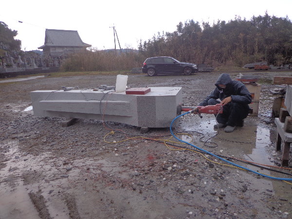 2人とも石の制作現場は初めての経験です。
