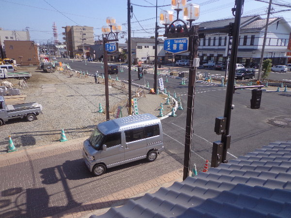 町屋本店2階から見た道路拡張工事の随分進んだまちなみです。