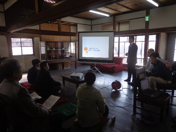 パワーポイントで事業の初めから現在までを順を追って説明しました。
