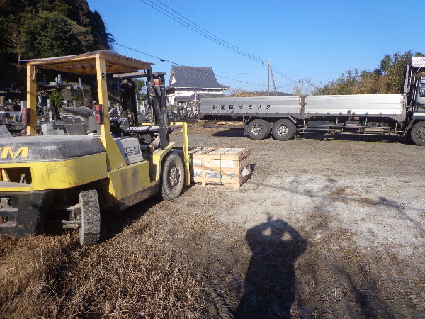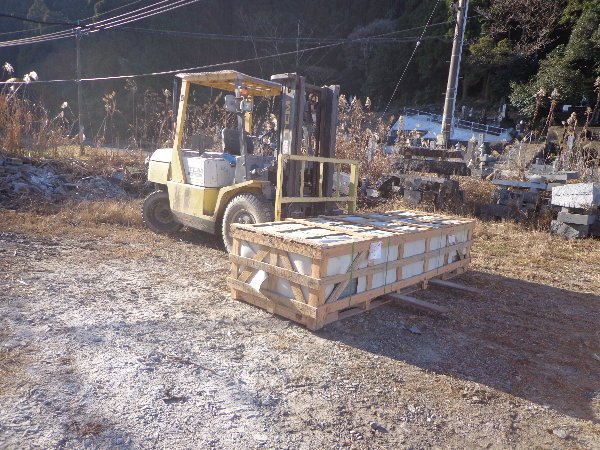 ☆石材店に今年初めての石が届きました。いわば初荷です。