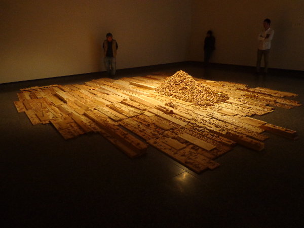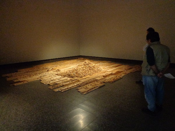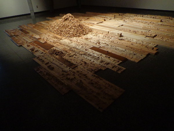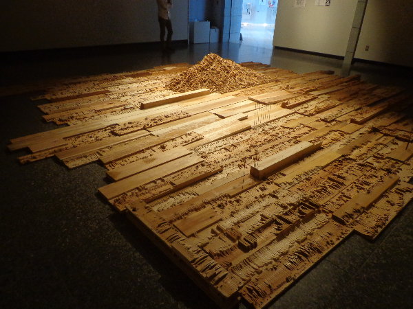 田村の個展は「『街・・・』木と鉄のインスタレーション」と言うタイトルで、近年の作品に取り入れているカッティングを全面に展開したインスタレーションです。