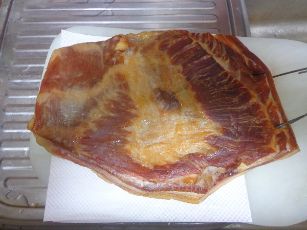 これまで何度か挑戦しましたが、いつも塩抜きで失敗、前回はスモークウッドが不良品で燻製過程で失敗。