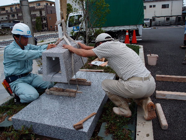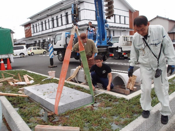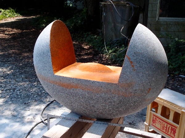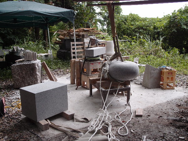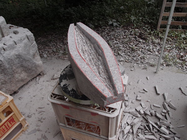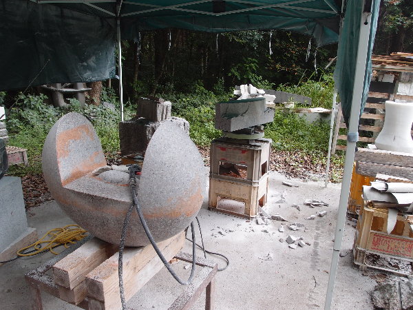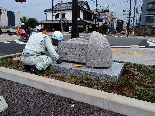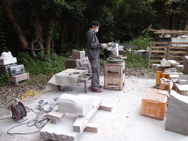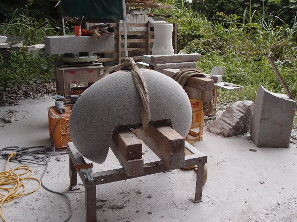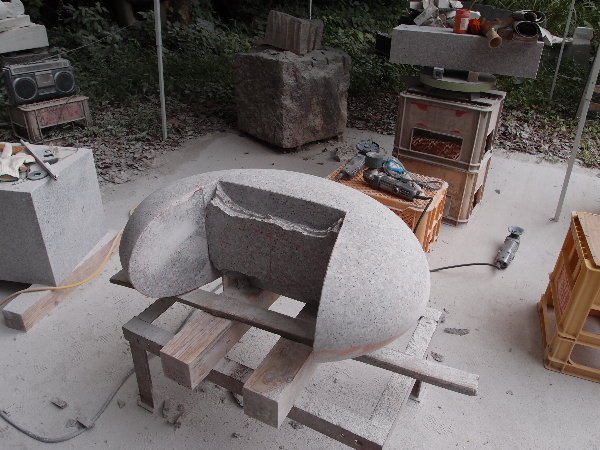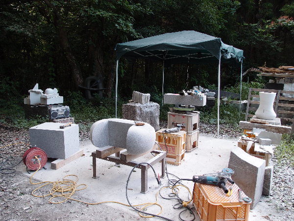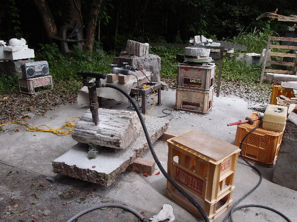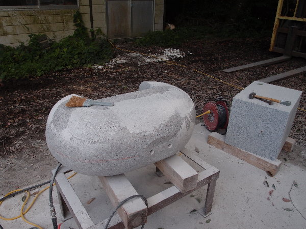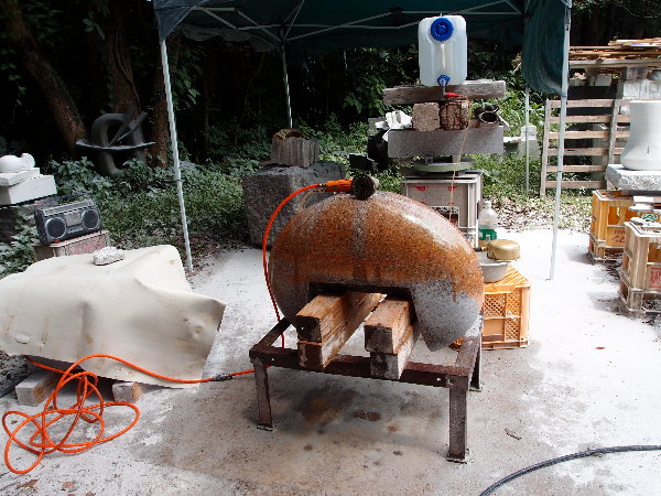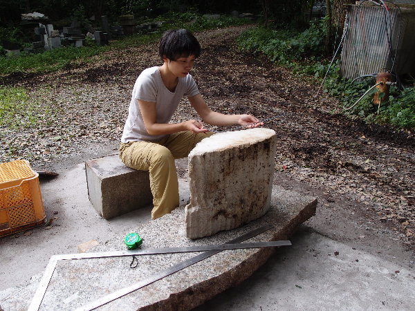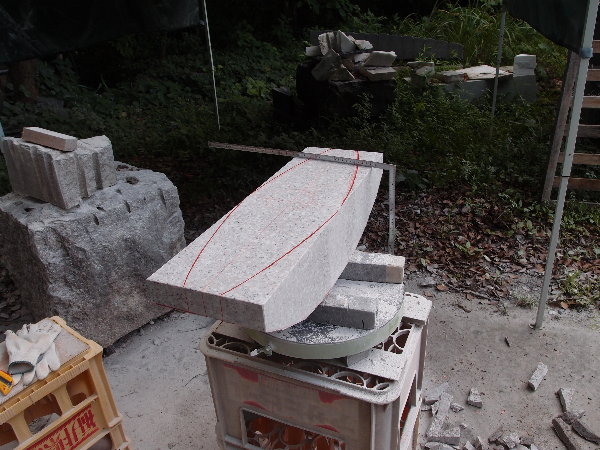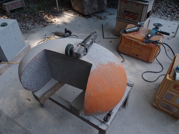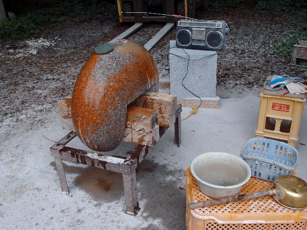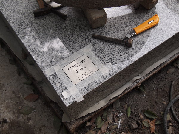 朝のうちに、あかりオブジェ公開制作の杉尾さんの台座石を作成しました。