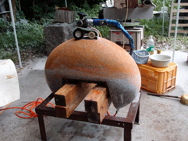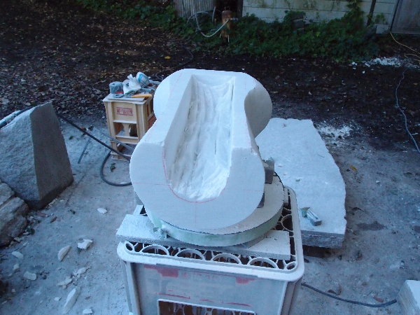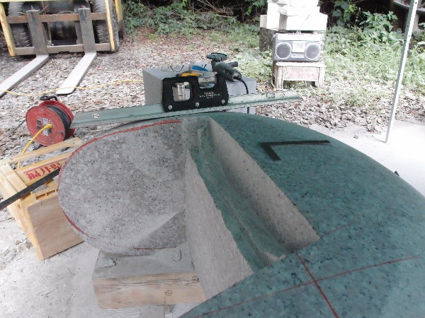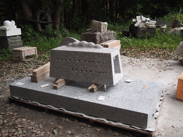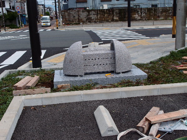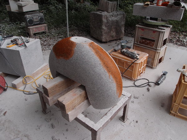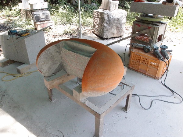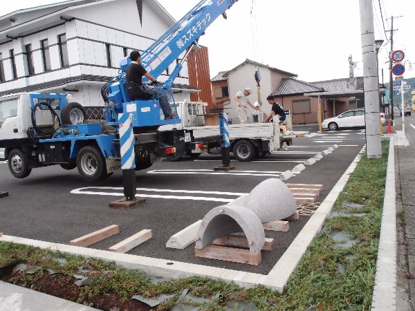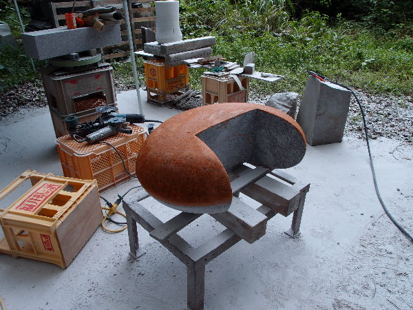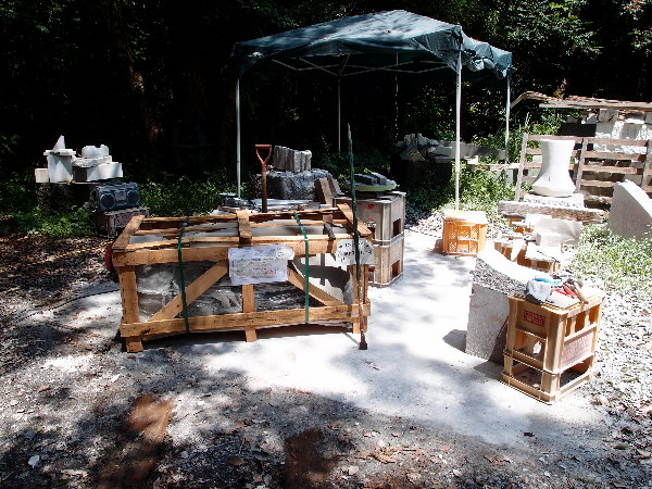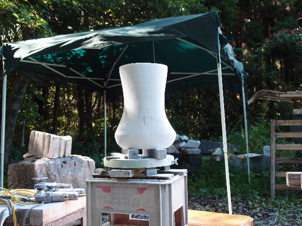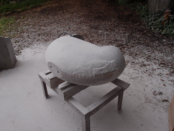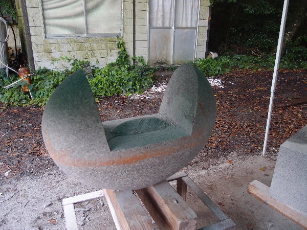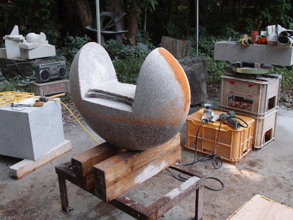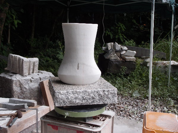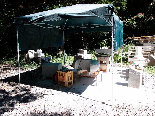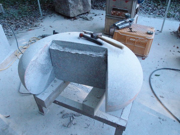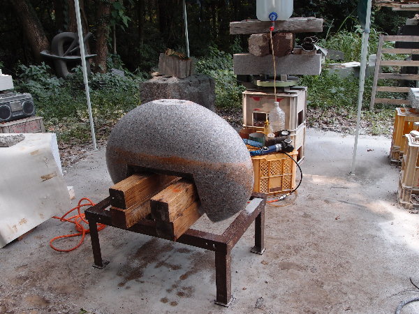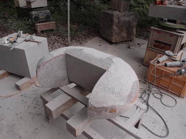 朝のうちに、あかりオブジェ公開制作の杉尾さんの台座石を作成しました。