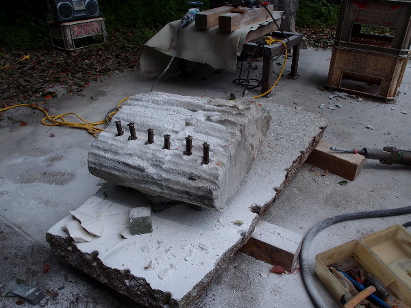 モニュメント本体の凹部の突起部成形作業を進めました。