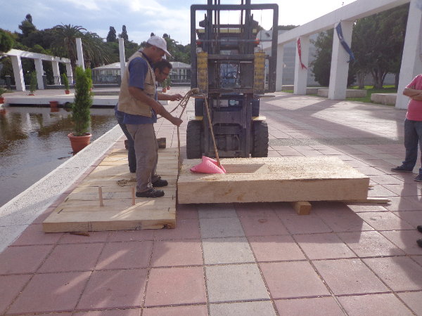 ☆橋部をもう一度降ろして、大理石の位置あわせと橋部上面の仕上げをしました。