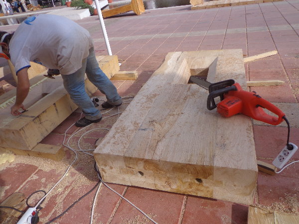 さっそく、建立した窓のチェーンソーのケバを取る作業をやってもらいました。