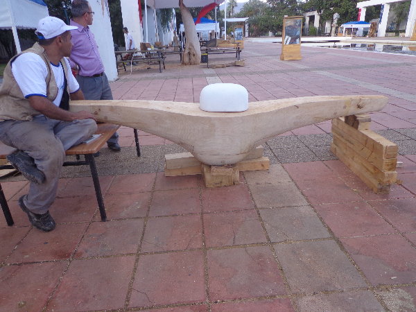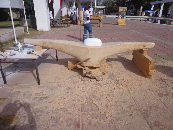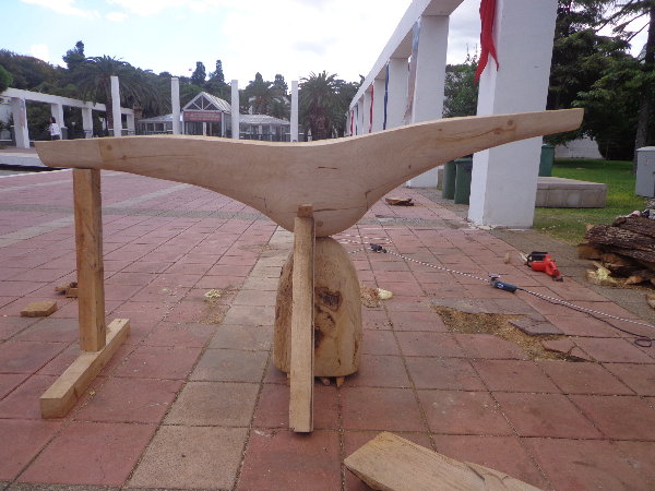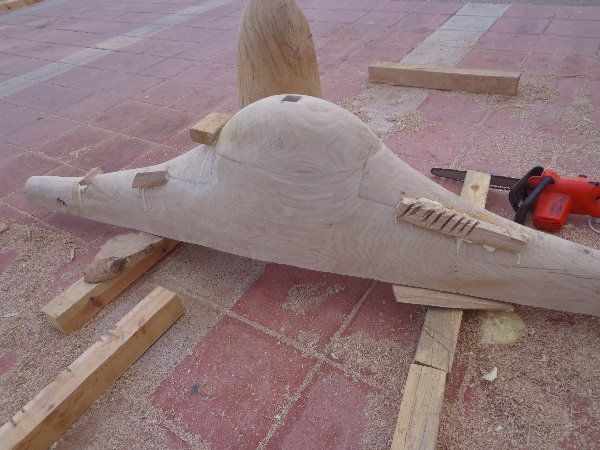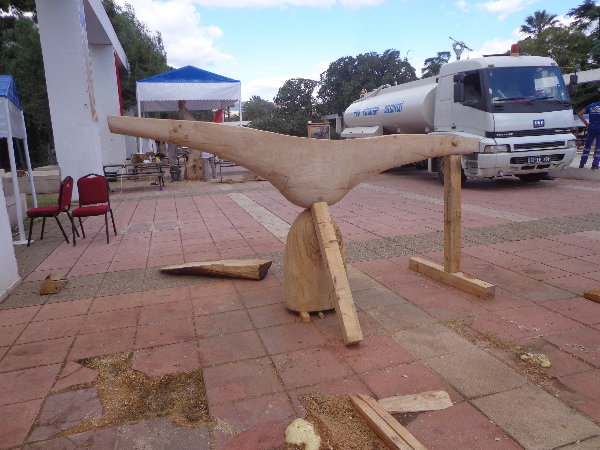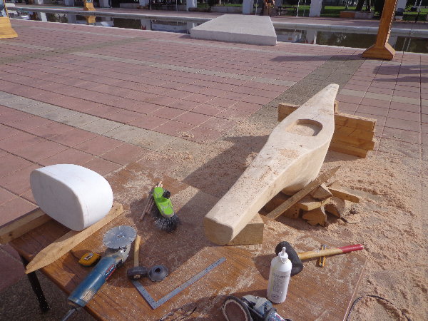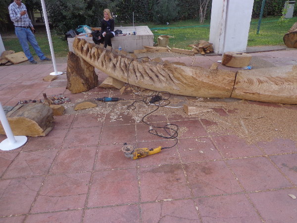 実はもう片方の仕上げを急いでいる時に、手伝ってあげようとしたトングチュが、私がせっかくテクスチュアをつけた面をチェーンソーで均していきます。