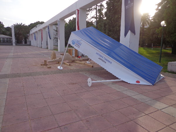 まずはクロージングセレモニーで展示設置する場所を決め、設置の準備にかかりました。