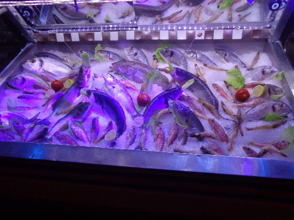 ☆ホテルのディナーがあまりにもひどいし、港街なのに一度も魚料理を食べさせてもらっていないので、夕食は海辺のシーフードの店へ行くことになりました。