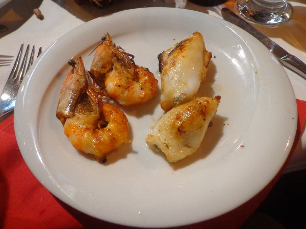 私のオーダーしたのはえびとイカ。イカの中にはチーズが詰まっていました。