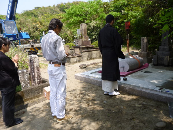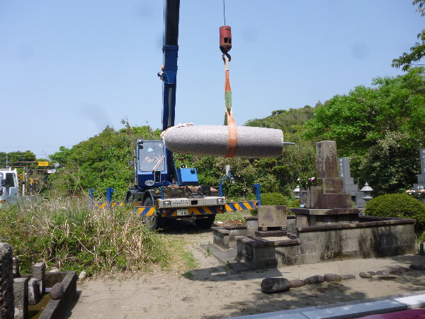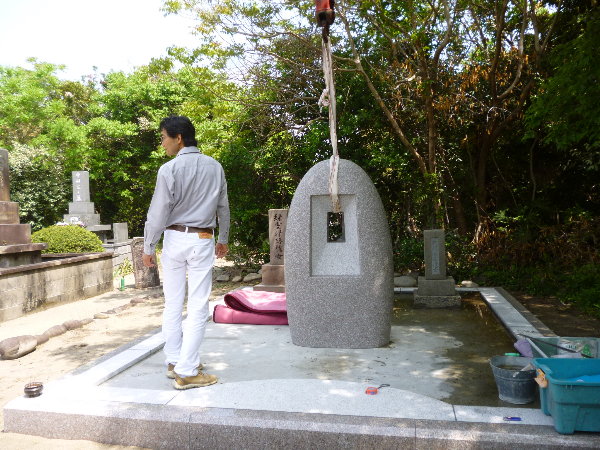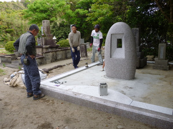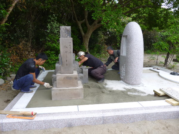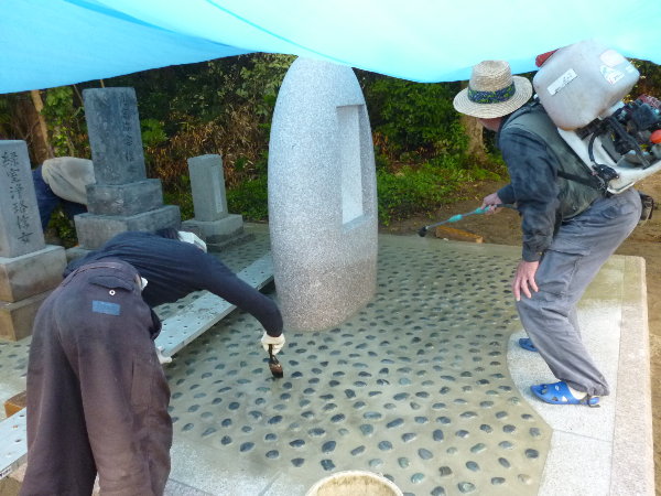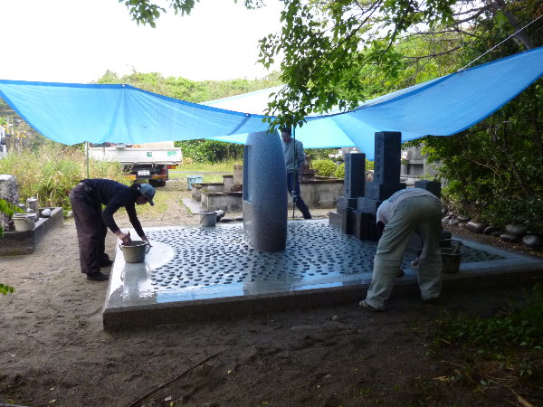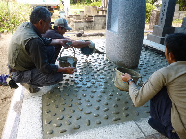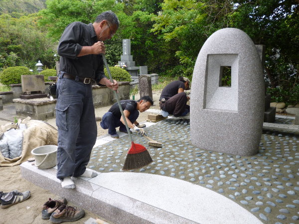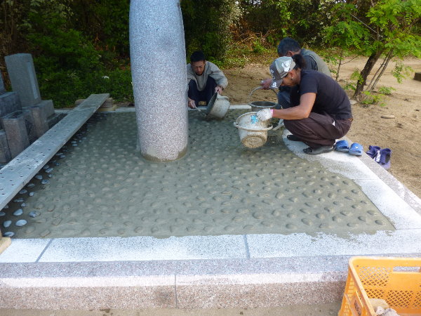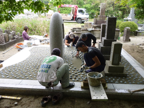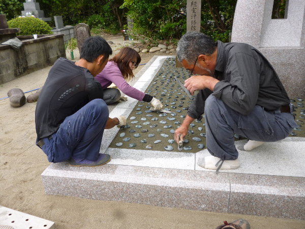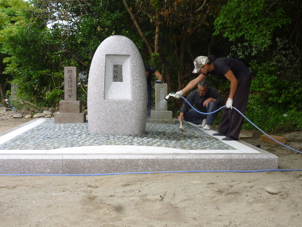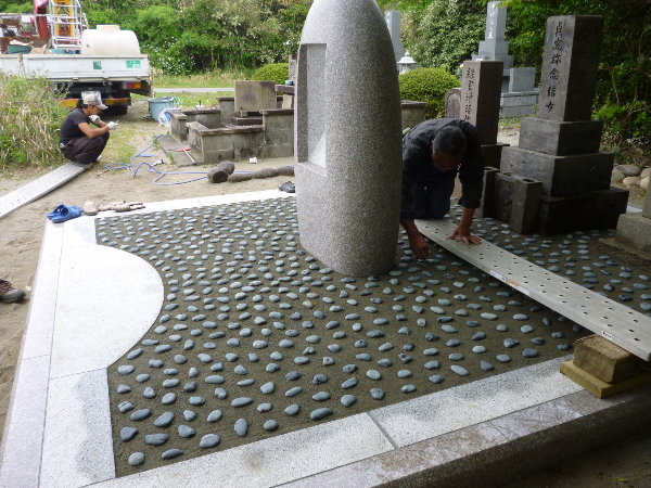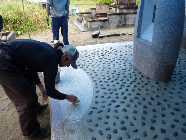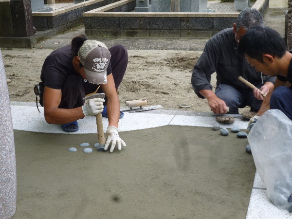 ☆今日は設置した墓碑の敷地内の床の洗い出し作業を行いました。