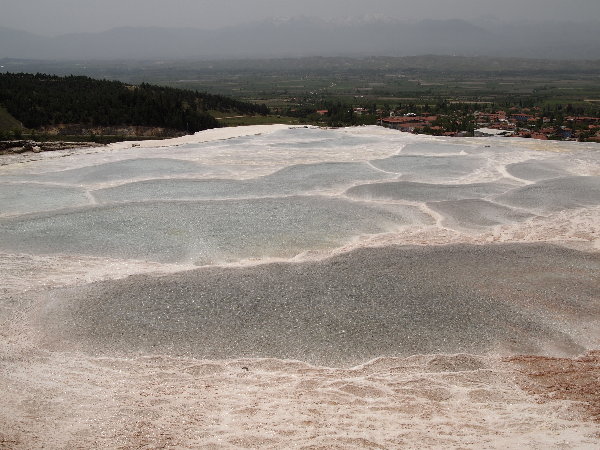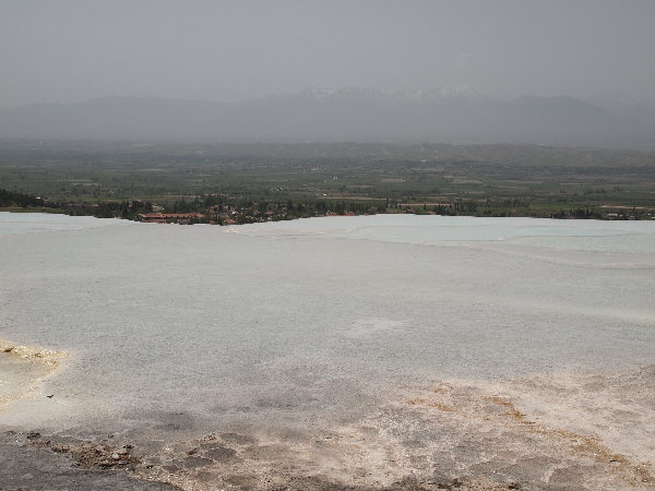 向こうの丘の一部が白くなっているところがパムッカレです。