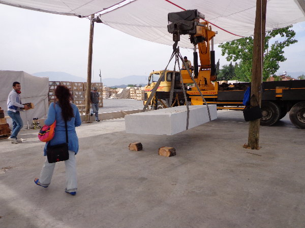 そこへニハット氏がやってきて、私の作品はトラバーチンを使うべきだ、トラバーチンがベストなのだ、ということになり、結局届いた立派な大理石は他の作家のために小切りされてしまいました。