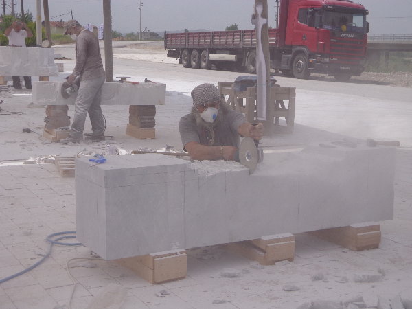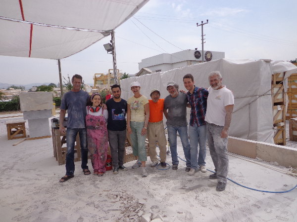 パムッカレ大学の学生たちがアシスタントとして来てくれましたが、芸術教育が専攻の学生たちで、彫刻などやったことの無い若者たちなのでほとんど使い物になりません。