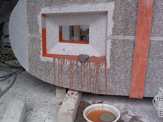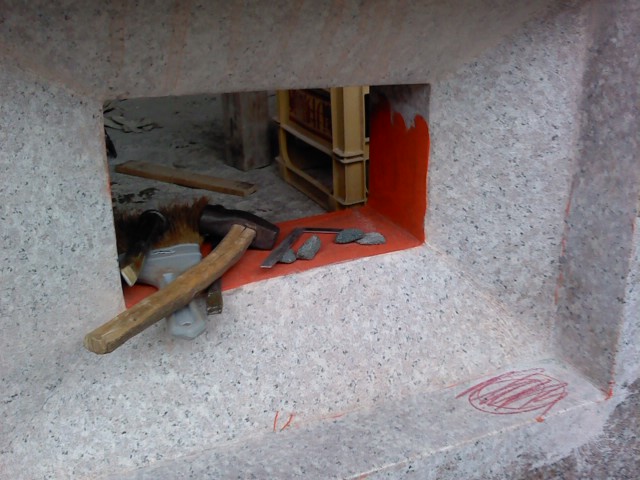 今日は墓碑を横にした状態で、窓の仕上げ進めました。
