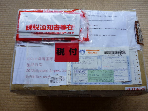 課税は輸入品にかけられますが、空港展の作品は展覧会の後には作家に返却されるので、EMSではきちんとした手順を踏めば課税されないのです。
