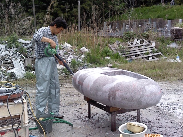 ☆墓碑のほうはほぼ形が出て、明日の午後には手磨きに入れそうです。