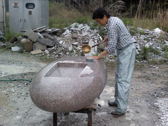 ☆今日の午前に、墓碑の現場で洗い流しの打ち合わせをしました。
