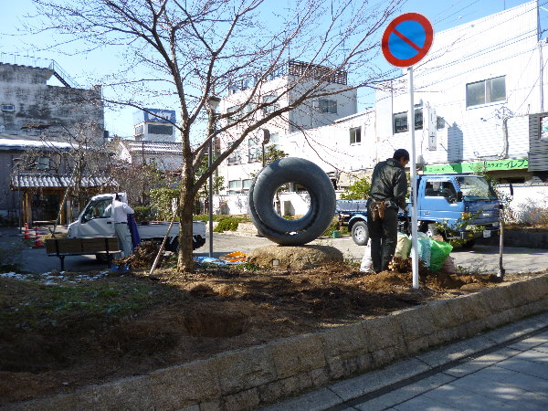 また隣接した仲町ポケットパークにも尾崎氏の作品が設置してありますので、ちょっとした尾崎コレクション空間となりました。