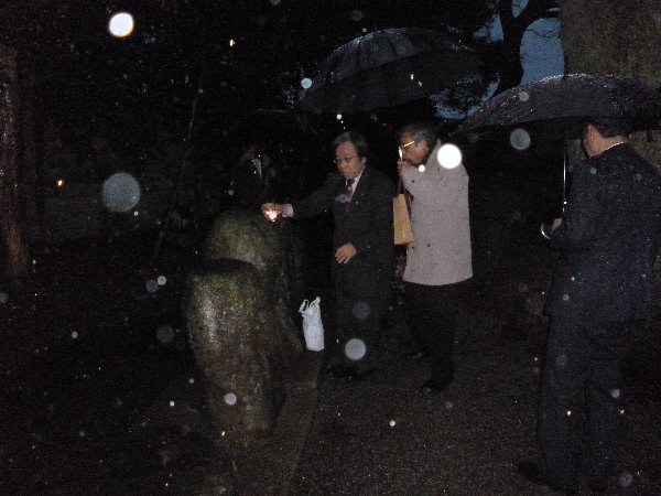 一昨日はあいにくの雨でしたが、まずは正装して火産霊神社境内にある庚申塚におまいりしました。