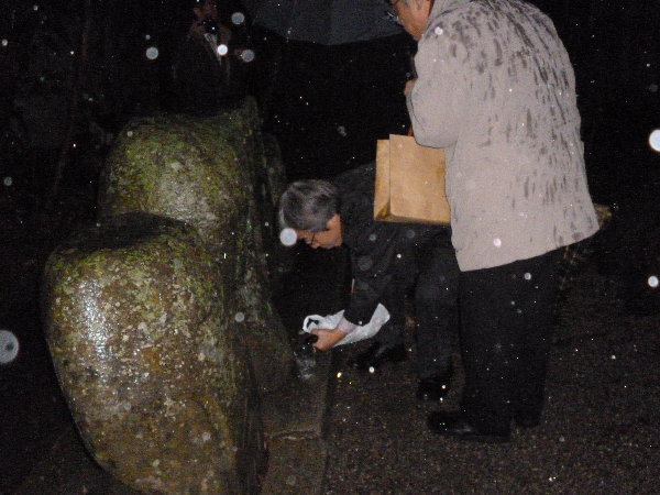 まず、私の作った庚申碑にお神酒を注ぎます。