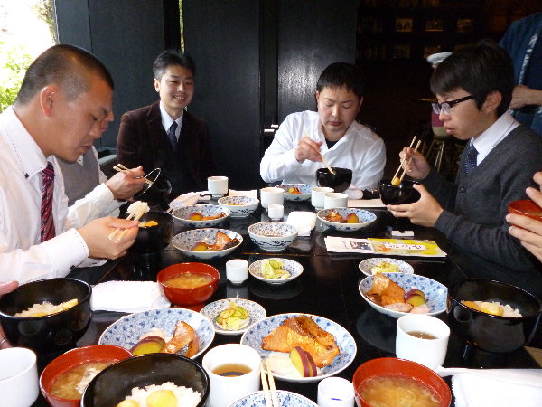 寄り付き料理の”蔵部”でお昼を摂りながら、関さんが小布施のまちづくりやまちづくり株式会社の”ア・ラ小布施”の活動についてお話をしていただきました。