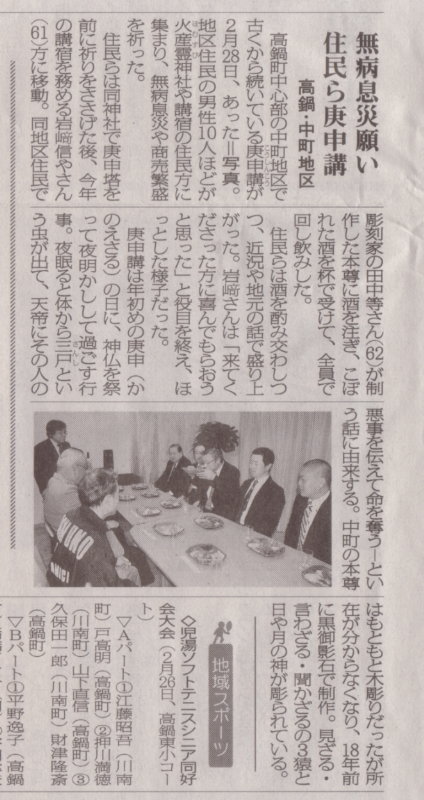 仲町公民館では、初庚申にあわせて庚申講を行っています。