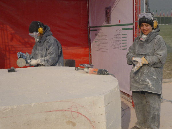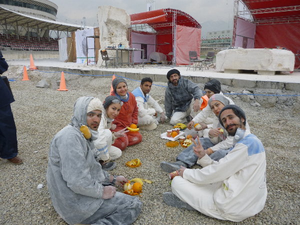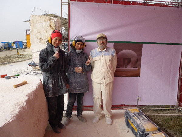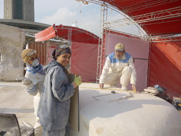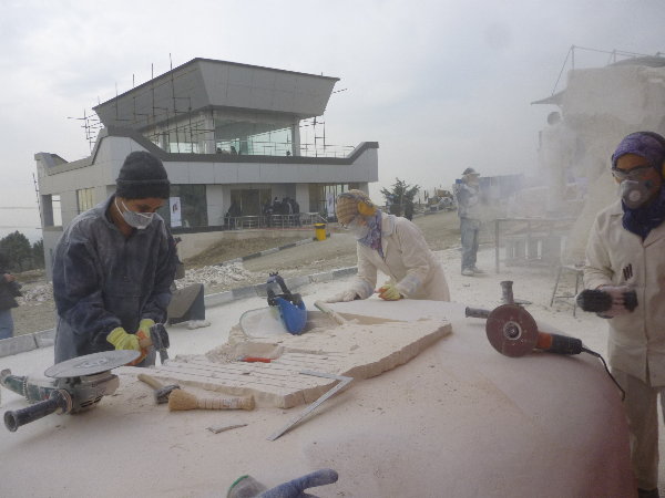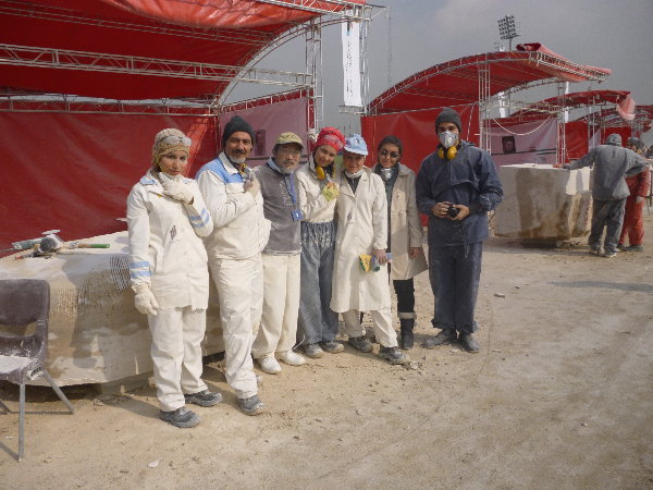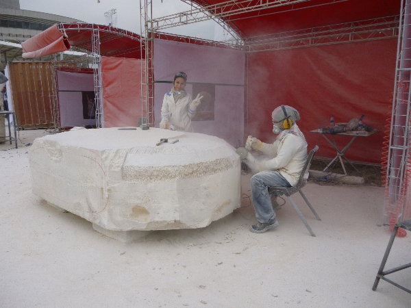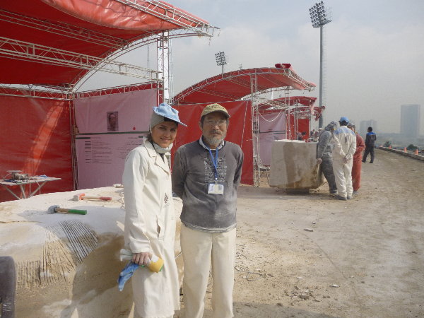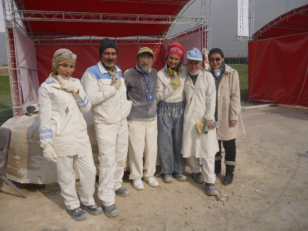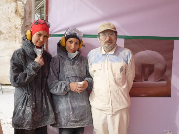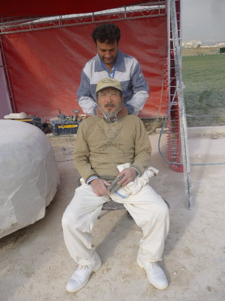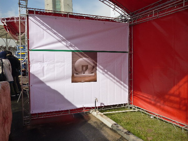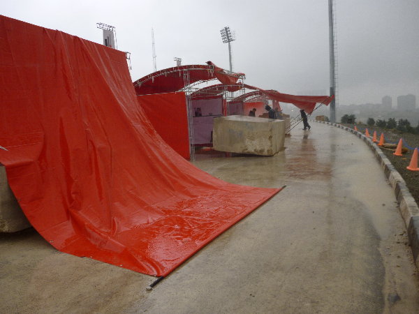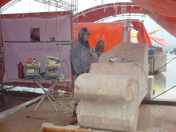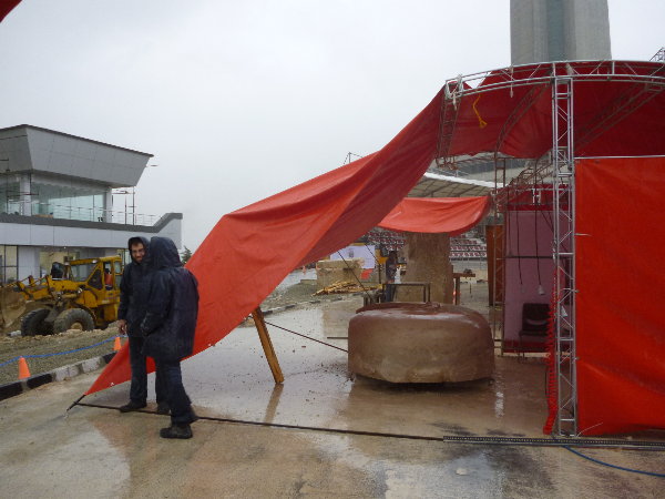 私は体を休めるためにホテルへ戻りましたが、ほかの海外作家3人は時間が足らないと言うことで、時折りテントに溜まった雨水の直撃を受けながら夕刻まで制作したようです。