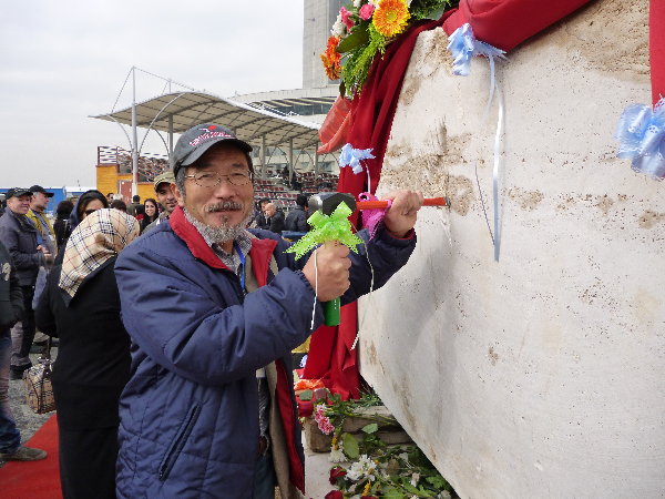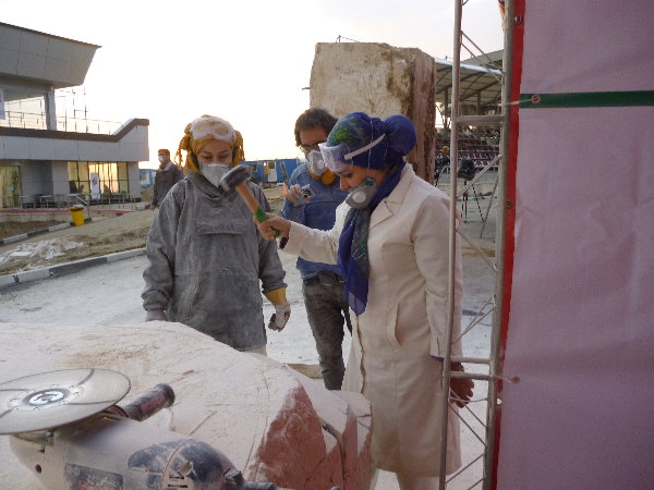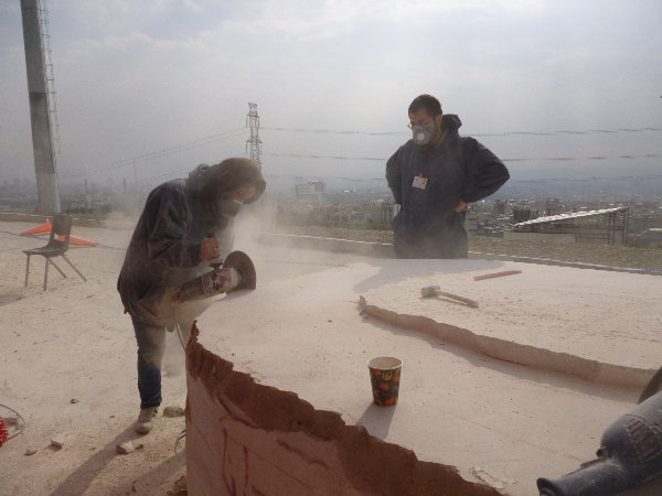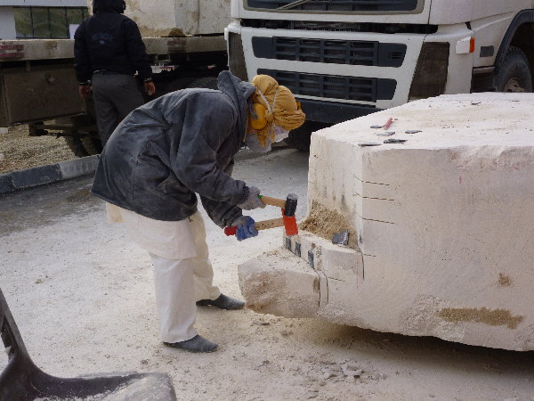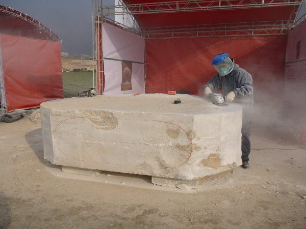 引き続いて石割りならぬ”ハツリ”の儀式が私の石を使って行われました。