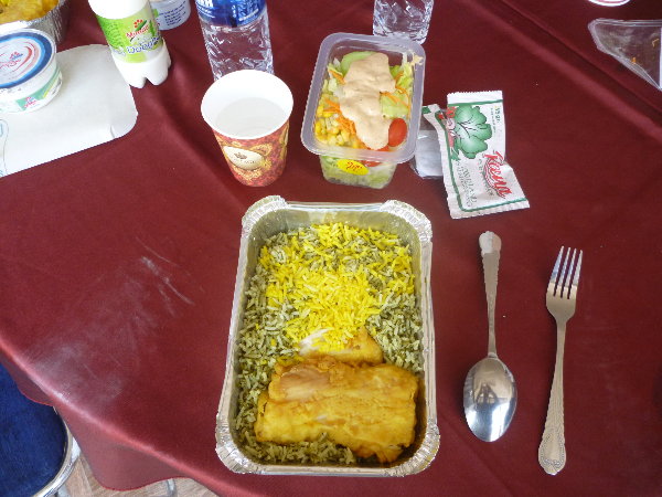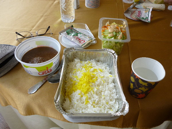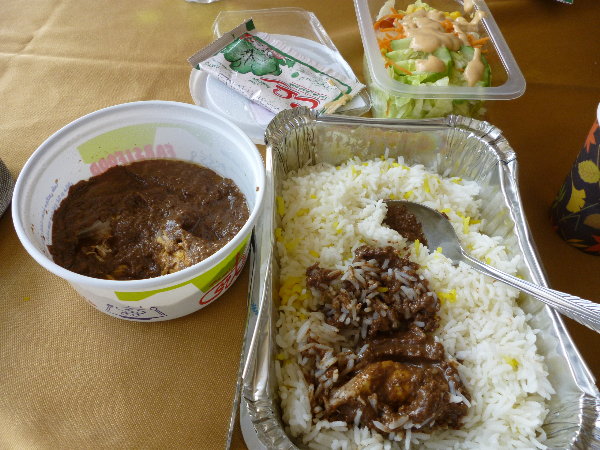 いつもはこのご飯の下にチキンやケバブがたっぷり入っているのですが・・・