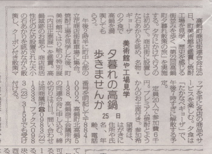 ☆今朝の宮日新聞に次回の散策の旅の募集案内が載っていました。