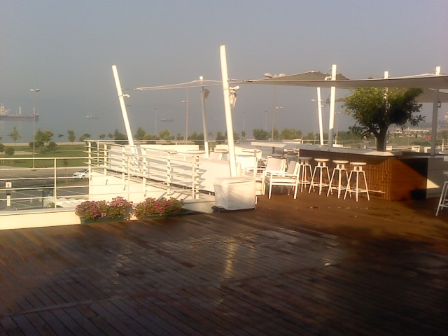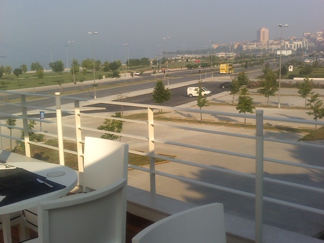 このレストランからも私の彫刻設置予定場所が見えます。