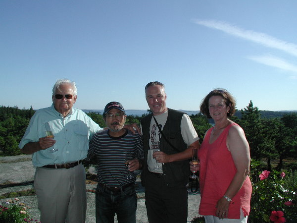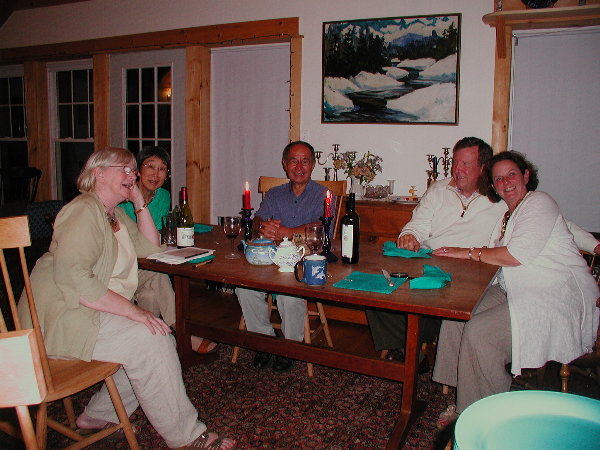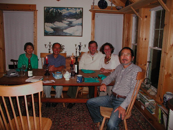 左からClewsさん、通訳のダーナさん、ダーナさんのご主人の玉木さん、ミンディーのご主人のディックさん、そして”私たちの仲の良い写真がHitoshiのブログに載るわよ!”とのろけるミンディーさん。