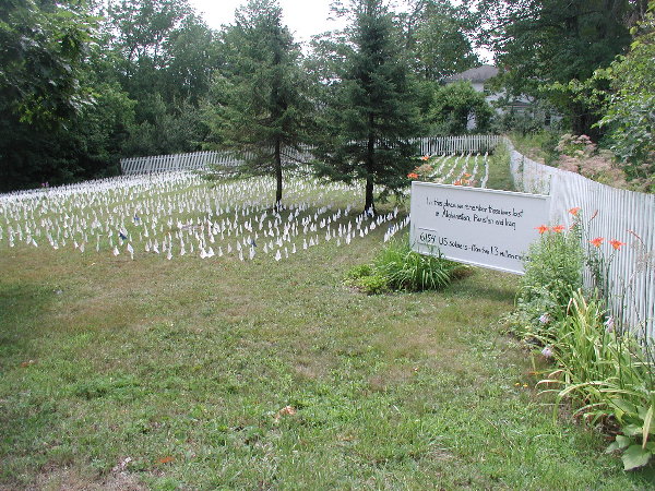この白い旗はアメリカのアフガニスタン、パキスタンそしてイラク侵攻によって亡くなった今日現在でのアメリカ軍人の数だということです。