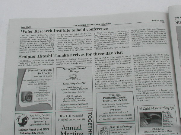 ☆Blue Hillからエルジーさんが、私のBlue Hill来訪を伝える7月28日付の地元の新聞を持ってきてくれました。