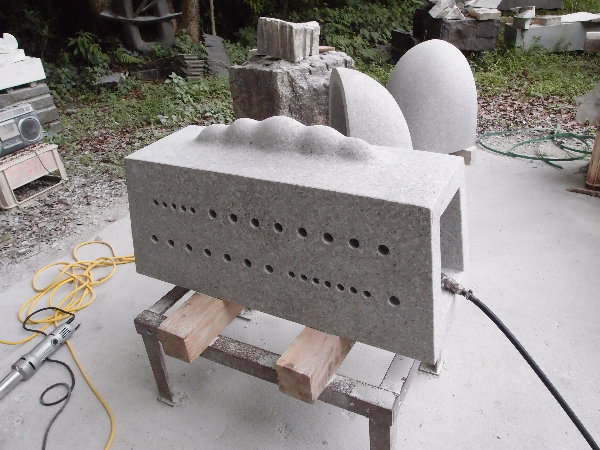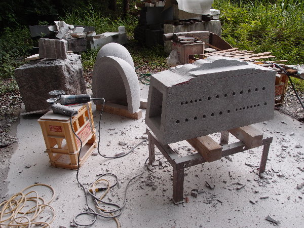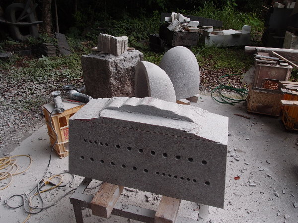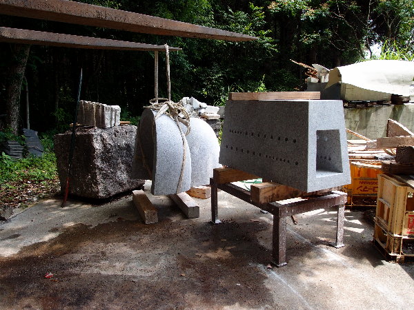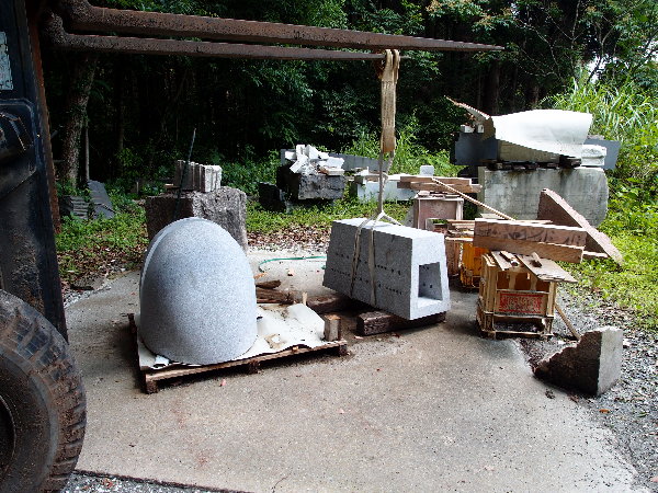 ☆今日の午前はまだ雨になっていなかったので、アンジェラスの森へ上がって、あかりモニュメントの石の荷を開きました。