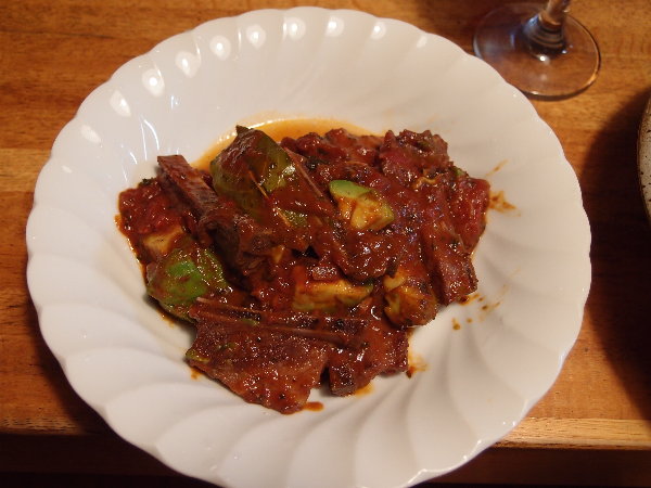 豚スペアリブの赤ワイン・トマト煮にアボカドをトッピングしたものも、なかなかの出来でした。