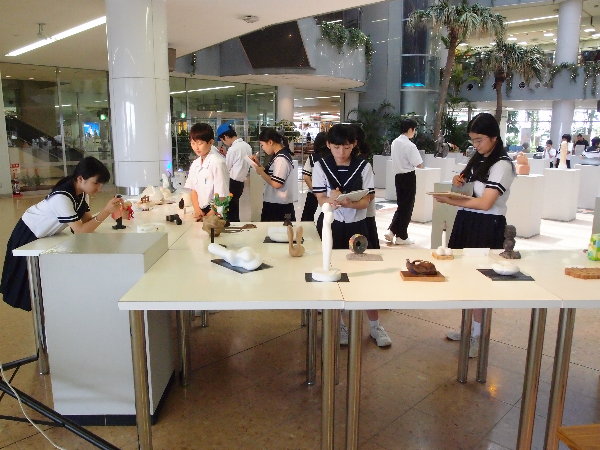 午前に、宮崎市内の某中学校の美術部の生徒さんたちが来られ、作品をスケッチしていました。