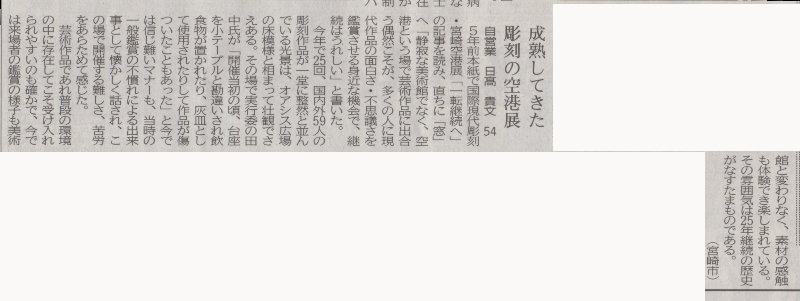 成熟してきた彫刻の空港展 A voice of newspaper about airport exhibition.