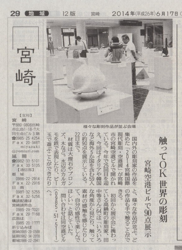 ☆今朝の宮崎日日新聞”窓”(読者投稿欄)に、「成熟してきた彫刻の空港展」という投書が掲載されました。